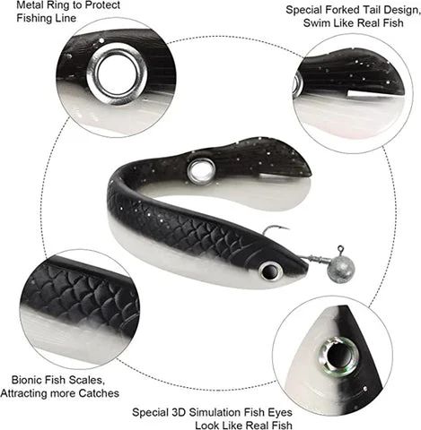 - Attività natatoria realistica Il design della coda con pinna in materiale super morbido consente la riproduzione di un’attività natatoria estremamente attraente per i pesci affamati. Imita fedelmente l’aspetto e l’attività natatoria di un vero pesce esca, esattamente ciò che i pesci affamati non possono lasciarsi sfuggire.